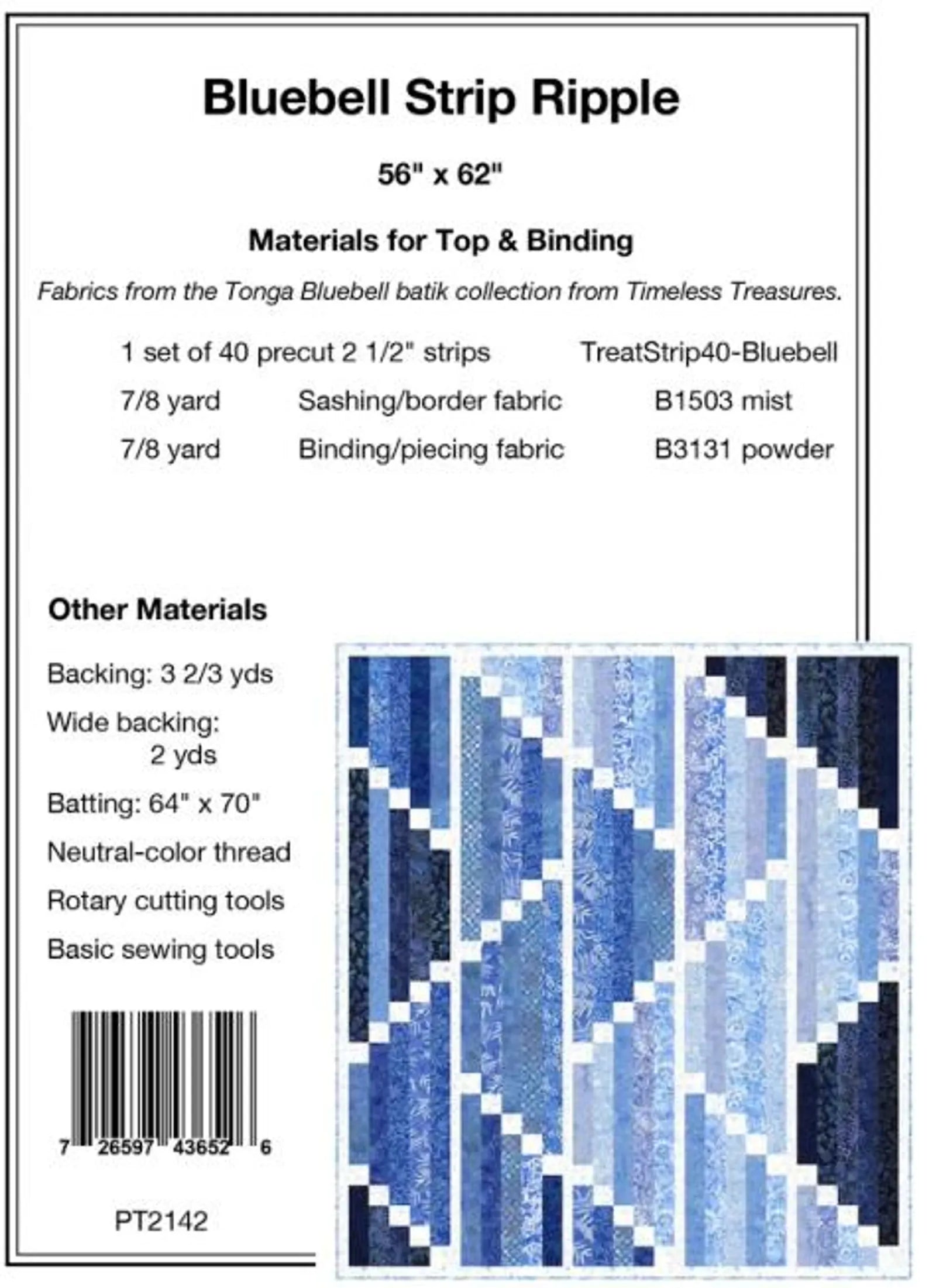 Bluebell Strip Ripple from Pine Tree Country Quilts - Quilt Pattern - 56" x 62"