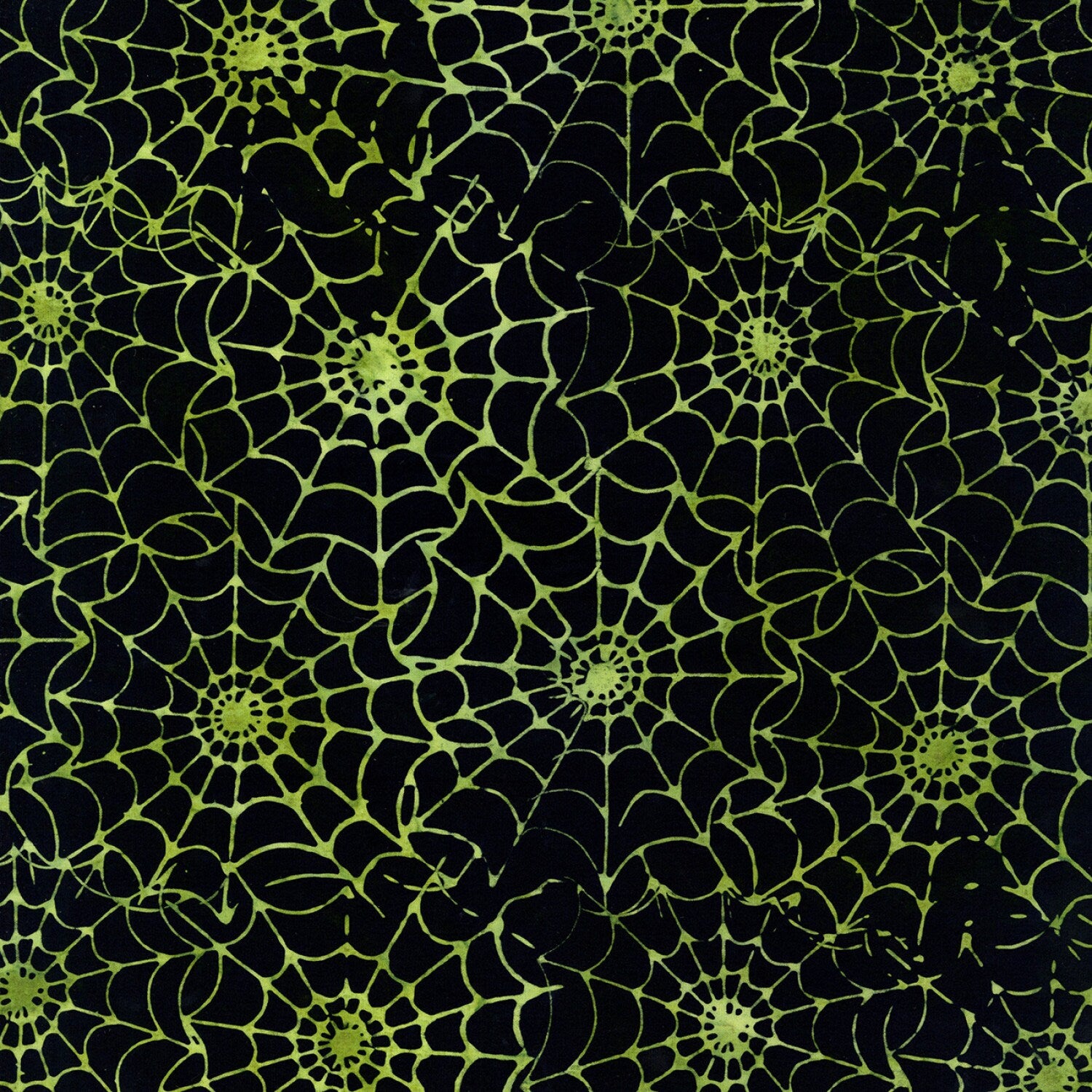 Spellbound Batik from Timeless Treasures - 1/2 Yard Spooky Spider Web Lime Green Webs on Black